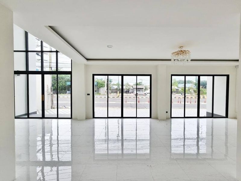 1st floor: Spacious double-volume duplex-style hall, kitchen area at the back.